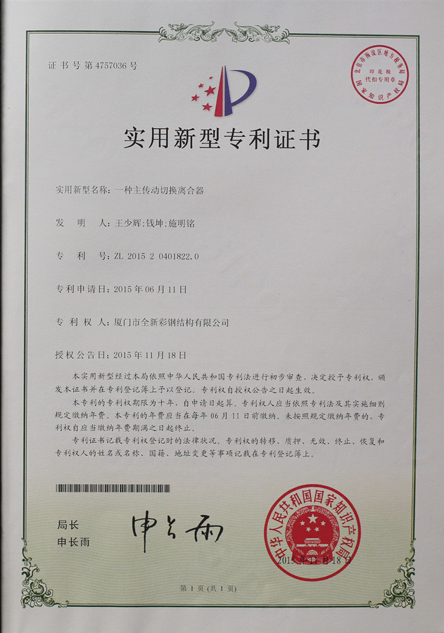 Patent Certificate of Auto Cluth